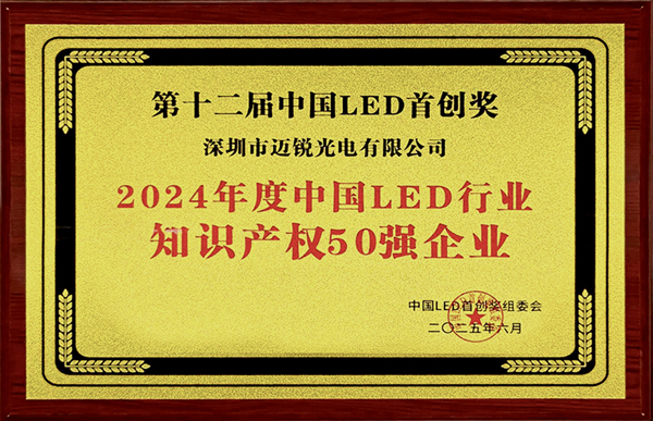 2025年6月,在第十二届中国LED首创奖颁奖典礼上,AGJACKPOT成员企业迈锐光电成功入选“2024年度中国LED行业知识产权50强”,以突出技术创新力与知识产权管理能力赢得行业高度认可。